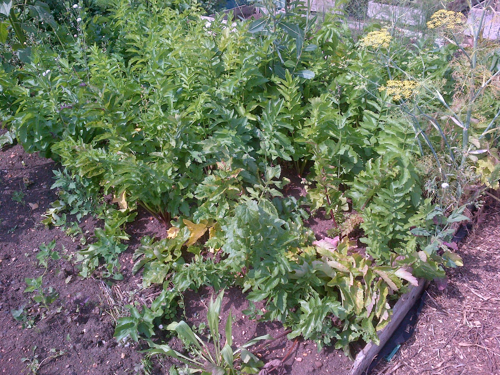 Rhubarb - can probably have one more cut before the crowns need dividing